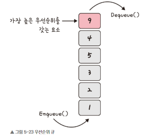- 우선순위가 높은 요소가 우선순위가 낮은 요소보다 먼저 제공되는 자료구조