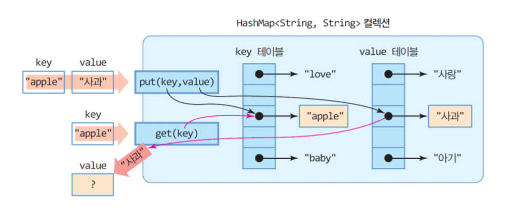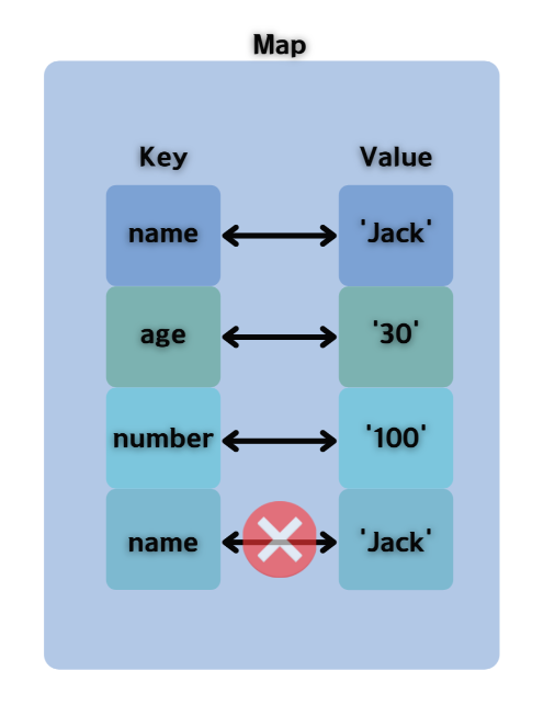 - 순서보다는 정의된 이름(key)와 상응하는 데이터들을 묶기 위한 자료구조