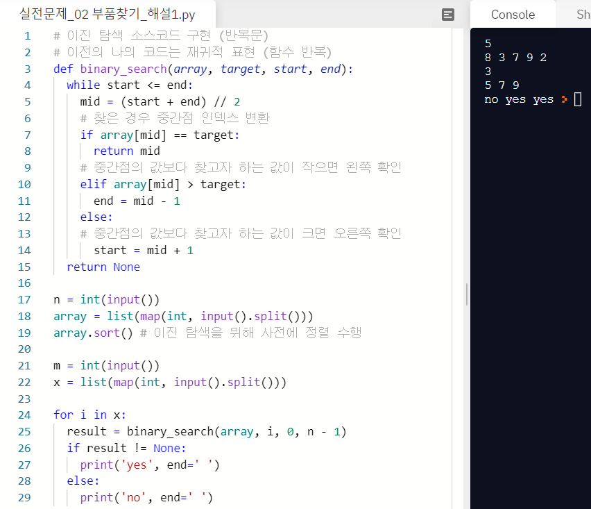 해설코드를 참고한 나의 코드1 (이진 탐색)
