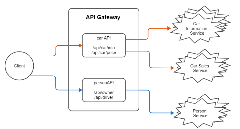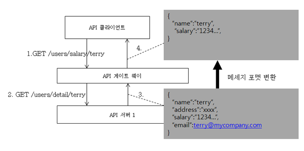 - API 서버에서 제공되는 API가 클라리언트가 원하는 API 형태와 다를 때, API Gateway가 이를 변경