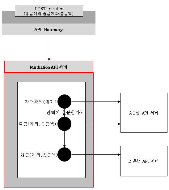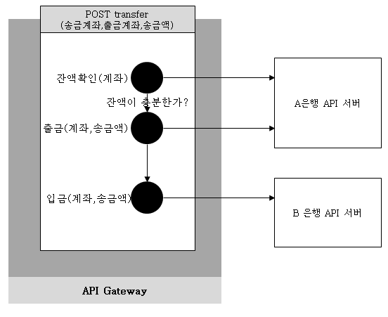 - 3개의 API 호출을 하나의 API인 POST transfer(인출 계좌, 입금 계좌, 금액)으로 구현