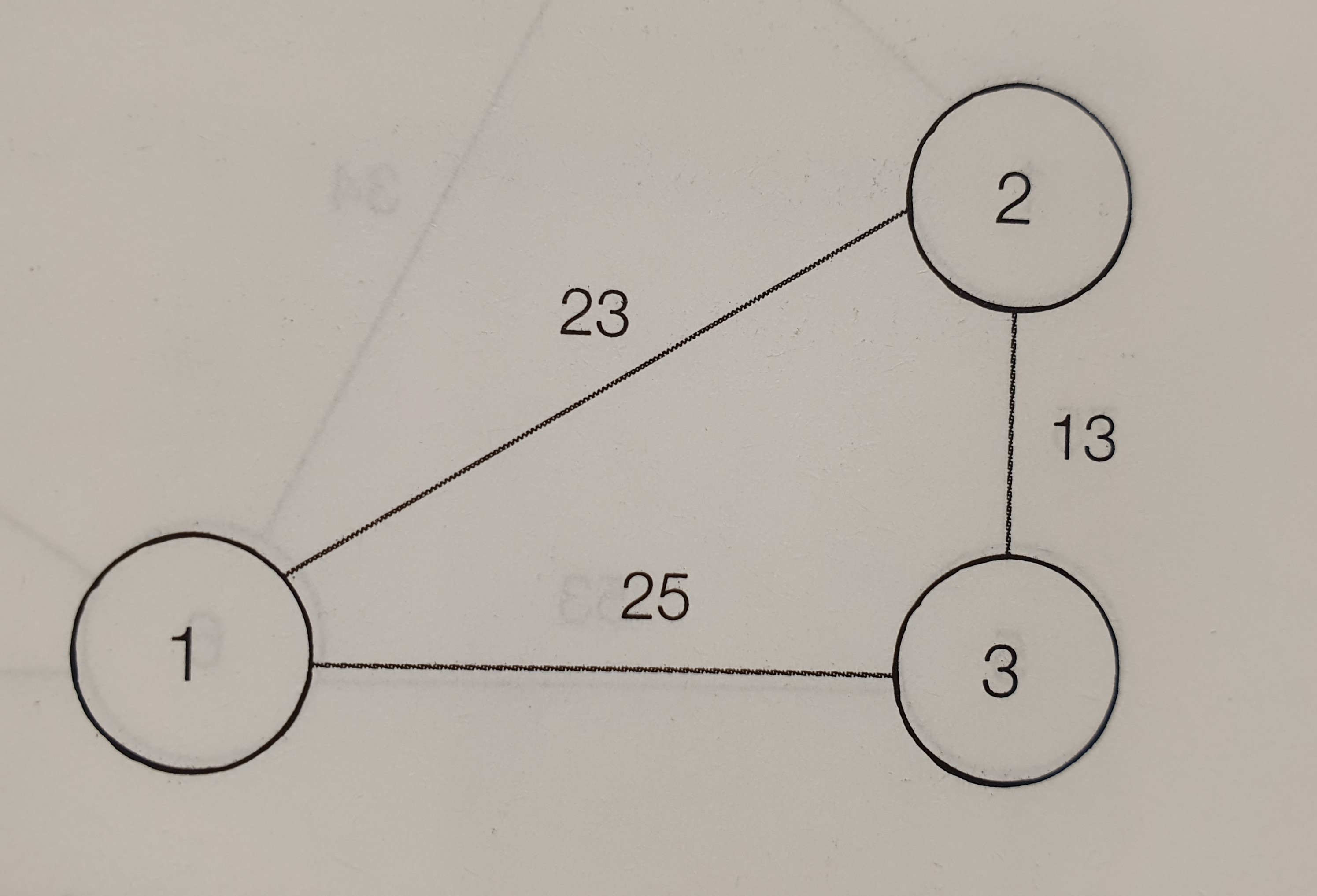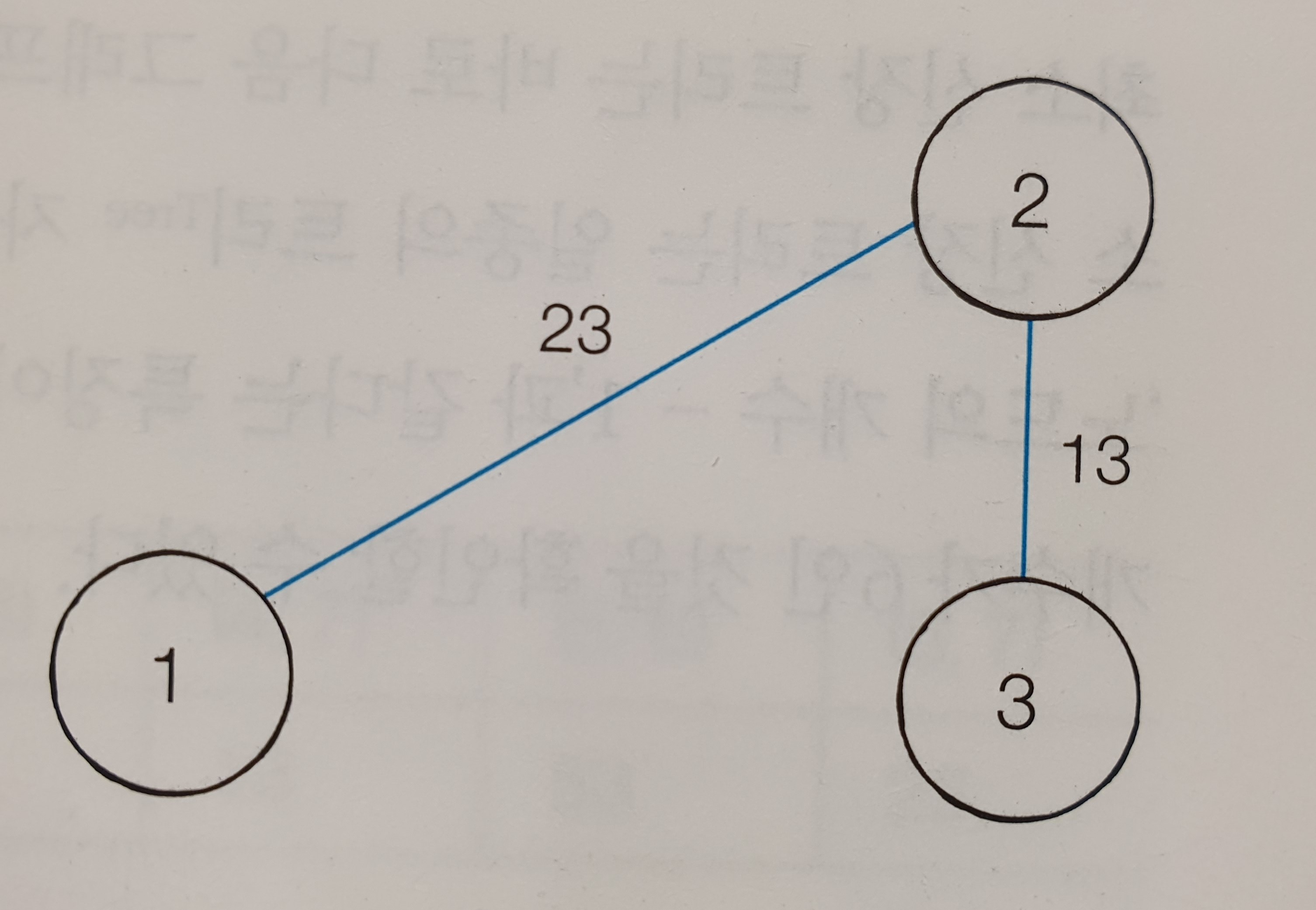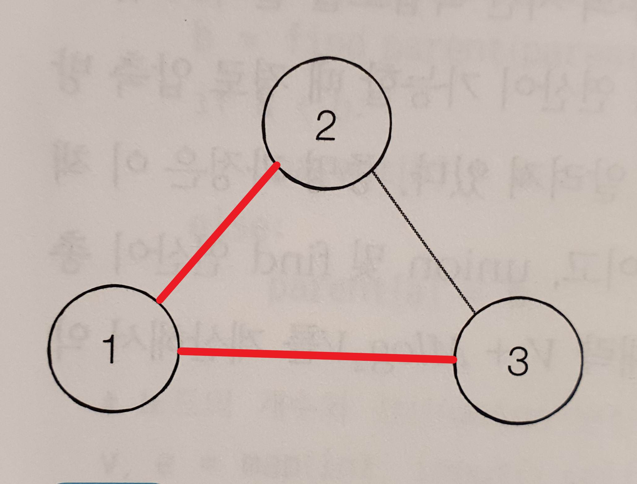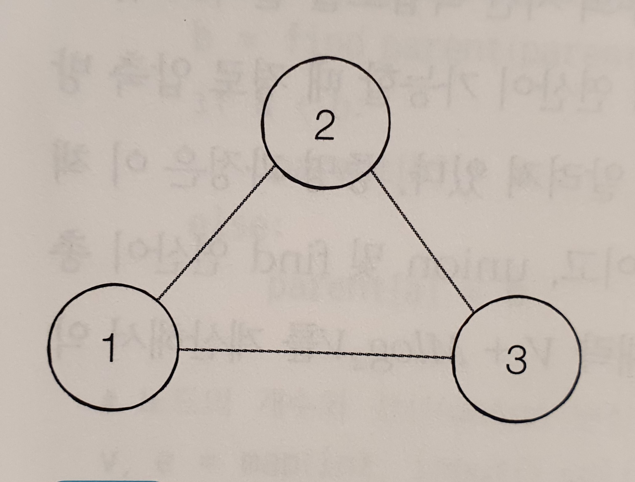 1, 2, 3이라는 도시와 각 도시를 연결하는 도로를 건설하는 비용이 위와 같이 정해져있다고 가정해보면, 모든 도시가 연결하는데에 최소 비용으로 하고자 한다면, 모든 경우의 수를 고려해보아야 한다.