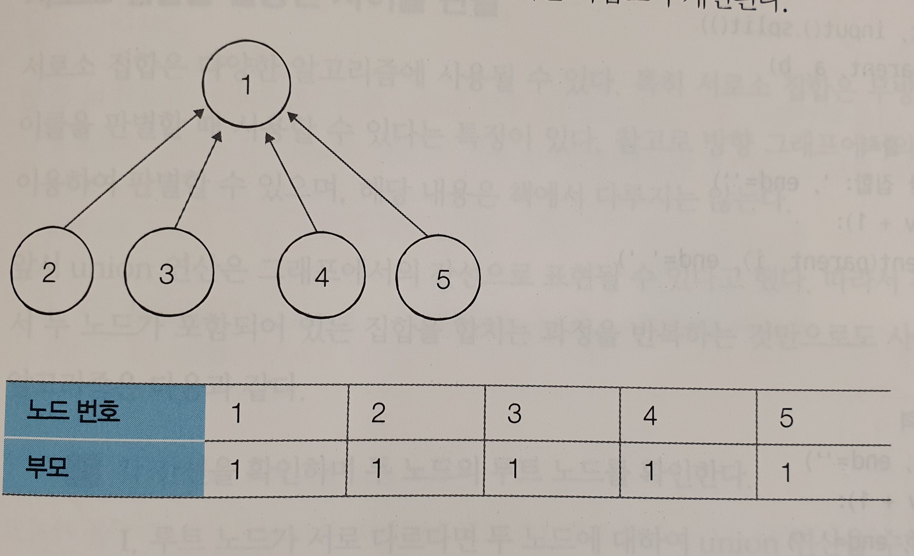 ① 루트 노드가 서로 다르다면 두 노드에 대하여 union 연산을 수행